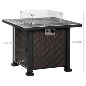Enjoy the ultimate garden ambience all-year-round with this Outsunny fire pit table. The rattan design is stylish, with an inner compartment to hold the propane tank safely. The garden furniture with 50,000 BTU burner means you can enjoy a flame without worrying about messy ashes. Whether it’s on a porch, patio, or in your garden, our gas fire pit table is a great addition to your home.
