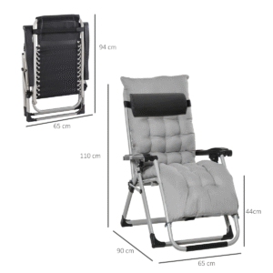 DIMENSION: Overall Dimension: (upright) 90L x 65W x 110H cm, (reclining) 160L x 65W x 78H cm. Folding Dimension: 65L x 16.5W x 94H cm. Weight Capacity: 120kg