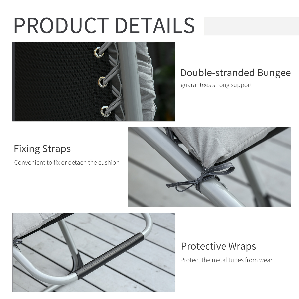 This outdoor patio lounge reclining zero gravity chair set from Outsunny is the perfect way to enjoy a lazy sunny afternoon on the patio, balcony, deck, or in your own garden! Its curved metal frame makes this lounger perfectly fit your body and gives you strong support. It has a soft cushion and pillow, which is easy to be fastened or removed according to your needs. Have a seat or even lying in this lounge chair and let your worries wash away as you enjoy the soothing outdoor view.