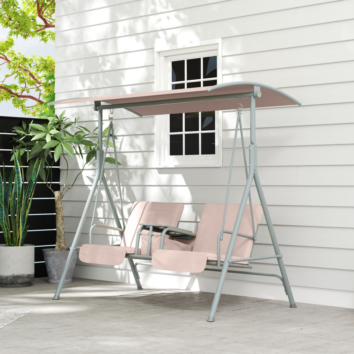 This Outsunny swing chair is a must for anyone who loves their garden. Using tough, heavy-duty metal to form an A-shape frame which effortlessly supports up to 180kg, the swing bench is fitted with a double seat swing seat. A table is fitted in the middle so you can keep smaller things close to you. A top canopy protects against light weather UV rays and direct sun glare from above. sunlight and wind. Comes with padded seats for comfort. So sit back and relax.