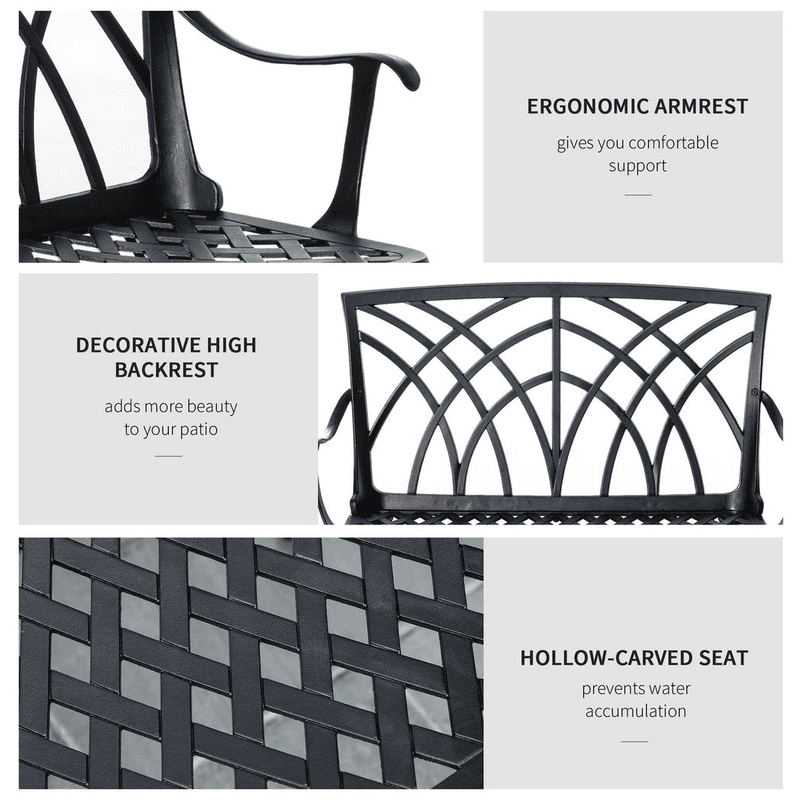 CAST ALUMINIUM FRAME: A solid and tough structure which will keep you supported when in use. Weather-resistant, with a cut-out diamond pattern seat to prevent water build-up.