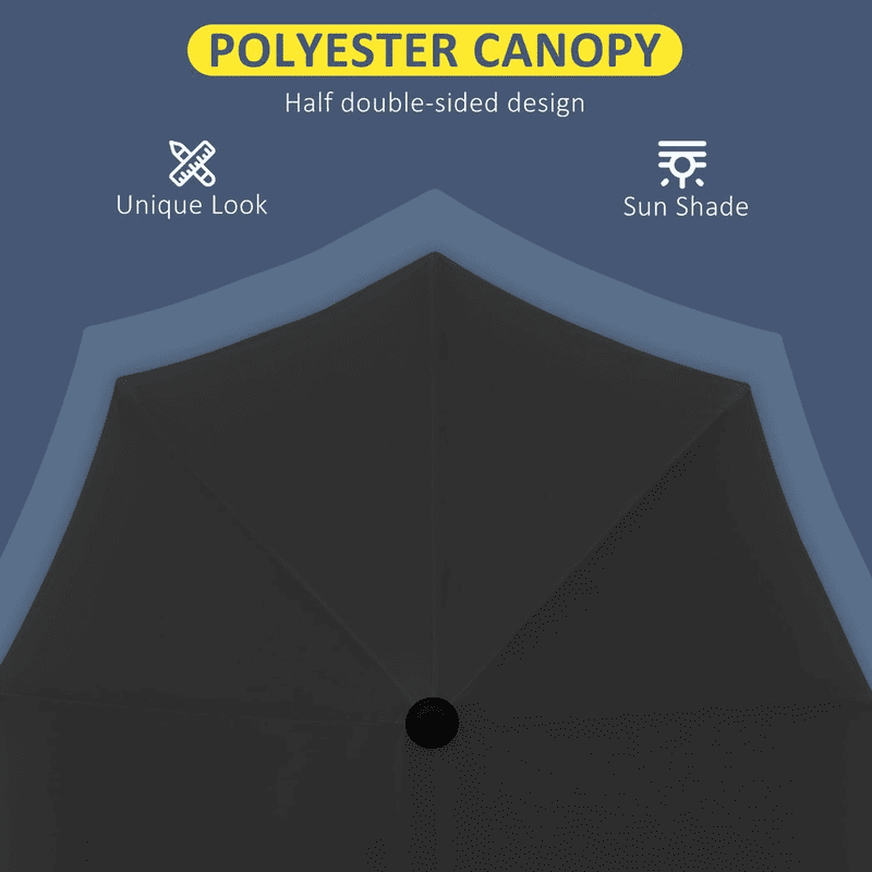 STEEL FRAME: Strong metal for half parasol to stand steady. Seven ribs connecting frame to canopy for extra support.