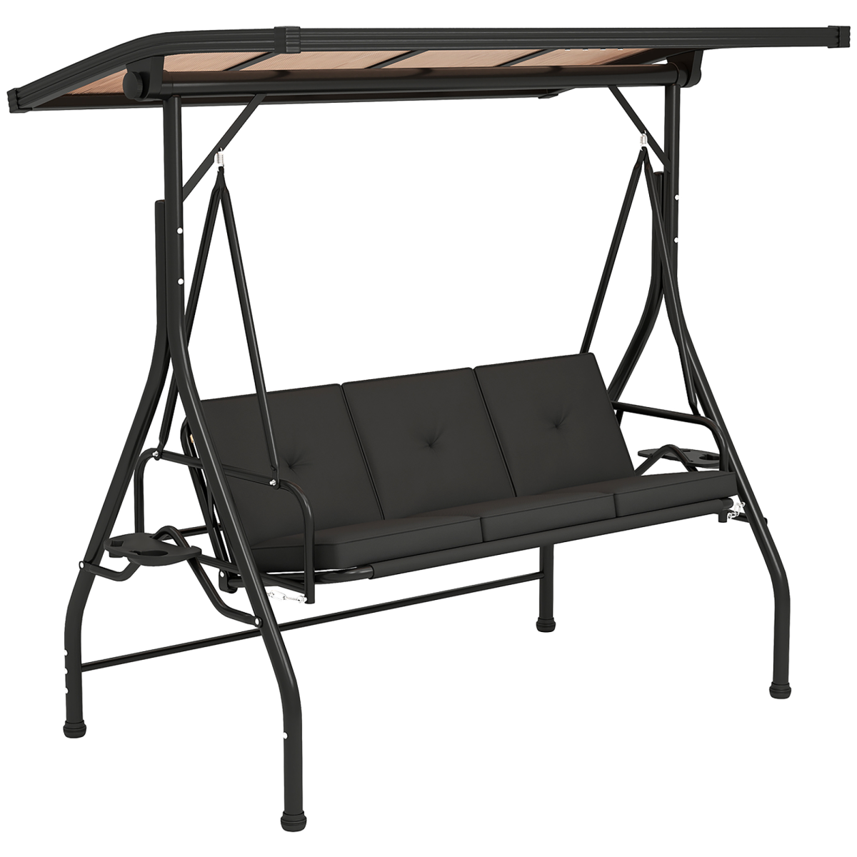 Relax in style with the Outsunny garden swing seat bed, featuring a 90-degree adjustable canopy for optimal sun protection (UPF30+). Complete with two handy side cup trays, this swing bench transforms into a comfortable flat bed, making it the optimal garden swing bed for those lazy afternoons. Enjoy the comfort of a padded seat and backrest as you sway gently in your new favourite spot.