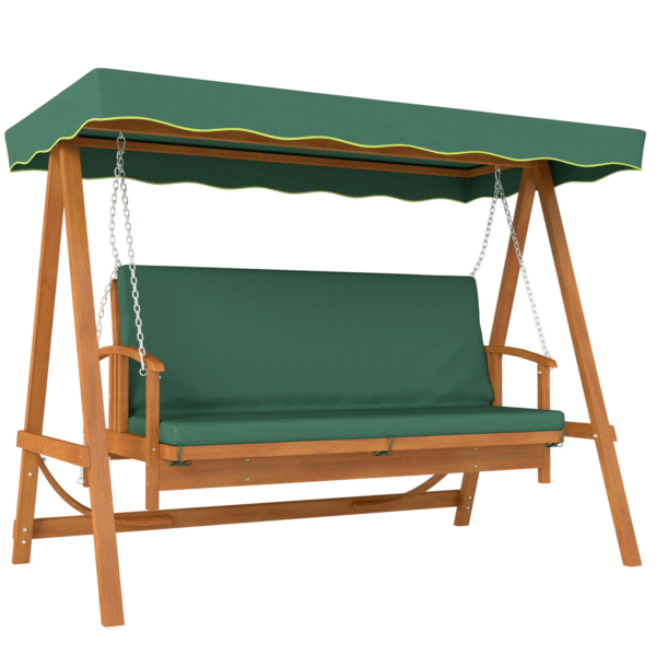 Relax the day away in style with this 2-in-1 wooden swing. Crafted from solid wood, this swing chair outdoor is robust and long-lasting, allowing it to be a mainstay for years to come. The painted finish makes garden swing bench resistant to rotting, decaying and damage from insects and bugs. With thick padded cushion and UV resistant canopy, you can get the extra comfort. Finished with robust hooks to hang up, this swinging garden chair is the great balance of style meets functionality.