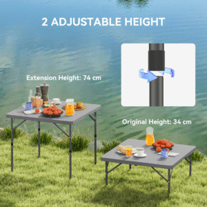 Discover the convenience of the Outsunny Picnic Table, a versatile plastic garden table that’s a breeze to transport and store. Crafted with a robust HDPE top and a metal frame, this portable table offers stability in two adjustable heights. Great for any garden gathering or camping trip, it effortlessly transforms into a compact folding picnic table, enhancing your outdoor adventures.