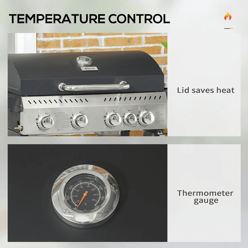 ? Grill lid for cooking low-and-slow and creating smoky flavours. On-lid thermometer to control temperature