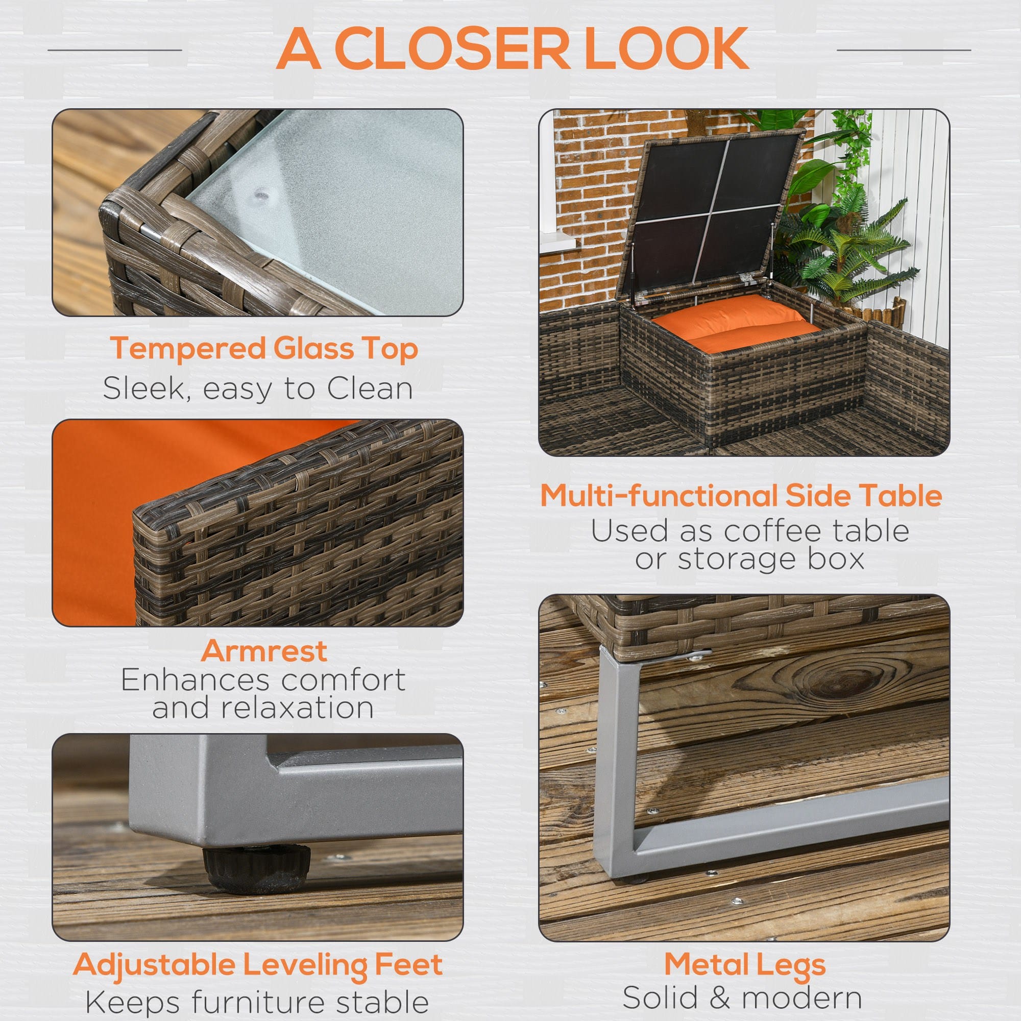 ● Powder coated metal frame for sturdy strength, with PE wicker wrapped around for a stylish rattan design which is resistant to light weathering