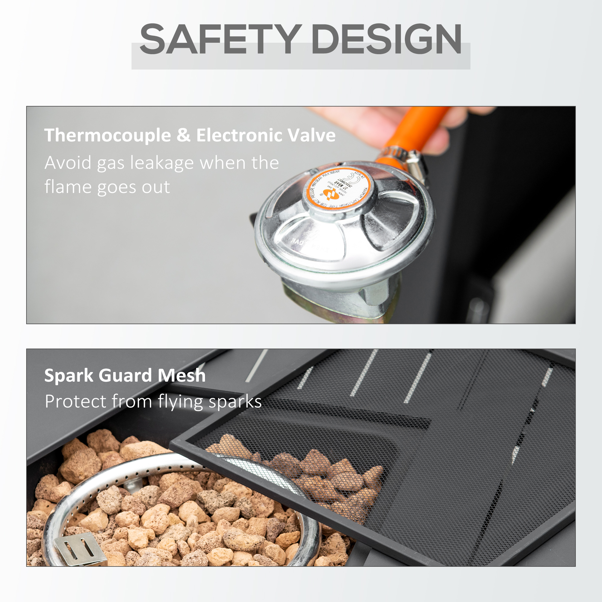 Enjoy cozy warmth and add beauty to your backyard all year round with Outsunny. Outsunny brings a functional piece of garden furniture with fire pit. Use the table to set down drinks, and other objects, and eat with friends. The 50,000 BTU burner creates a clean-burning flame without dealing with messy ashes. The lava rocks help retain warmth and add a charming ambiance. Keep the fire going with Outsunny.