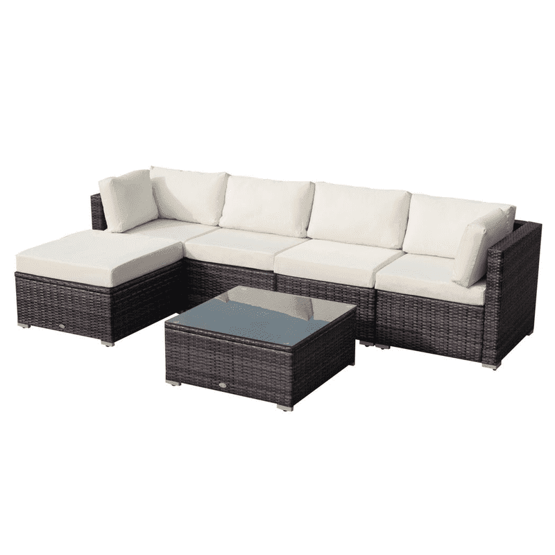 – “Outsunny 6 Pieces Rattan Furniture Set Garden Sofa Conservatory Wicker Brown”