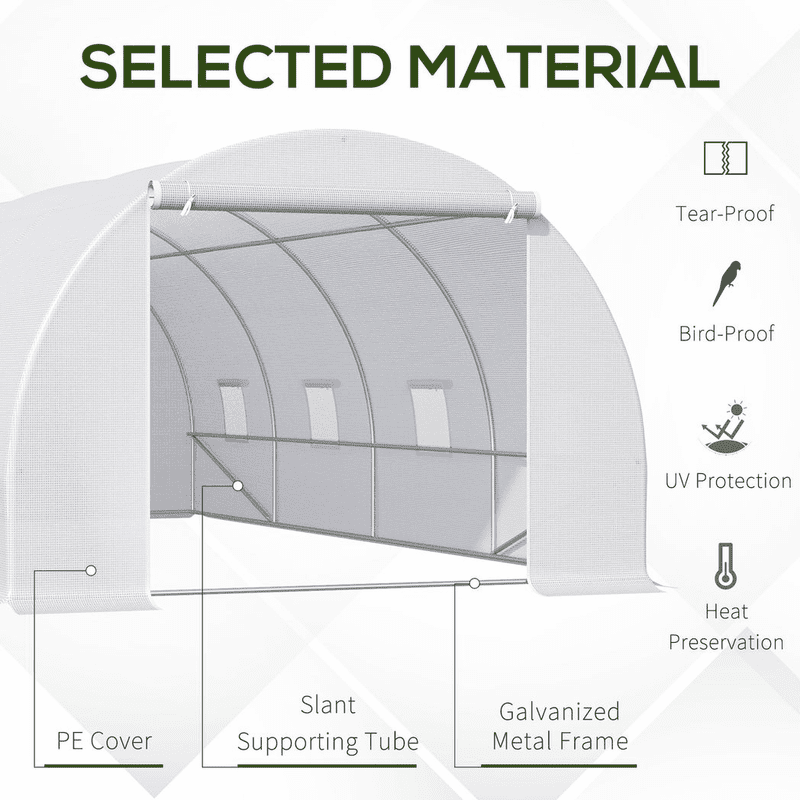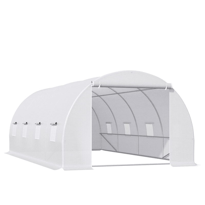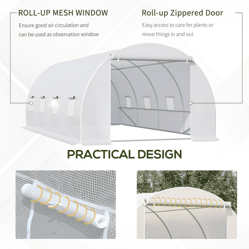 Quality materials: Sturdy metal frame with 4 extra slant supporting rods ensure stability of this poly tunnel for garden. The transparent PE plastic cover protects plants while allowing nourishing sunlight to pass through and make the plants in an environment with ideal humidity.8 roll-up side windows: The eight roll-up windows are all equipped with mesh to allow for cross ventilation and climate control, and also makes it easy to observe the growth situation of the plants.