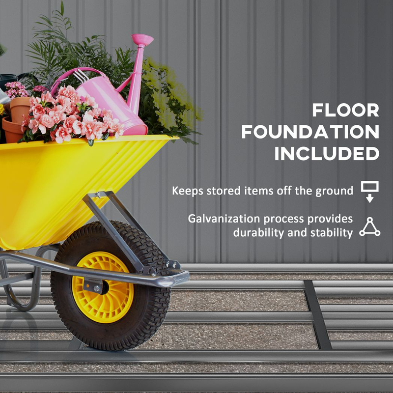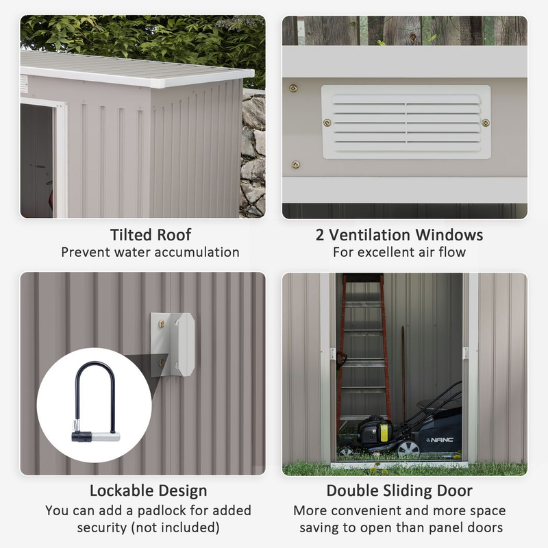 This galvanised shed from Outsunny is made of high-quality steel, which is durable, resistant to corrosion and will stand proudly in your garden. Our outdoor shed is fitted with an inclined steel roof to prevent water build-up, a double door for easy access this mobility scooter shed and two vents for air flow inside to prevent mould, mildew and humidity build-up. This pent shed is an all-round fantastic solution for storing your outdoor equipment and tools.