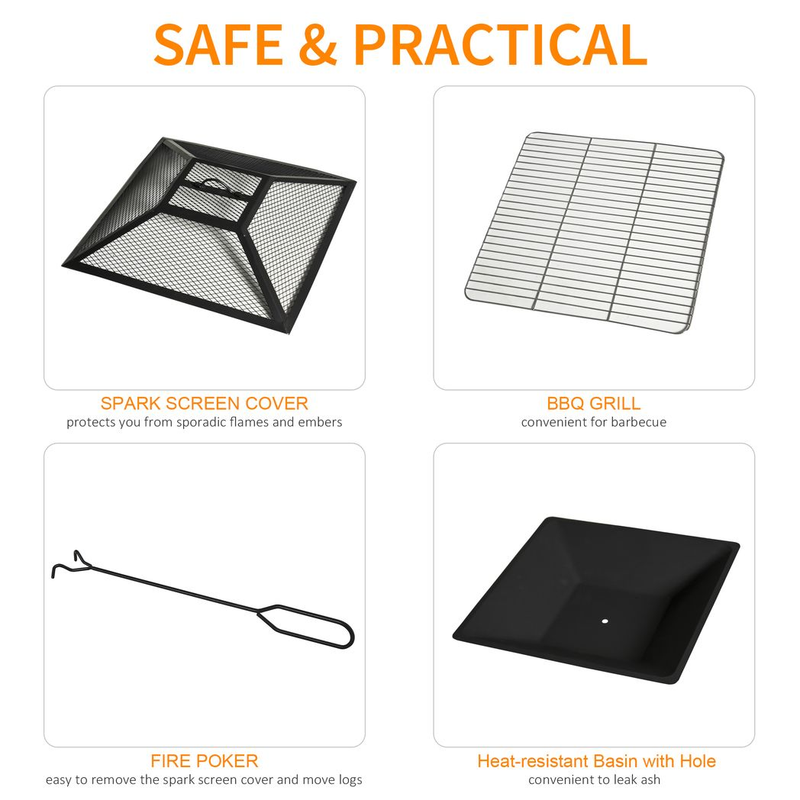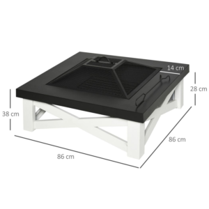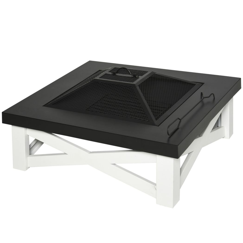 – “Outsunny 86cm Square Garden Fire Pit Square Table w/ Poker Mesh Cover Log Grate”