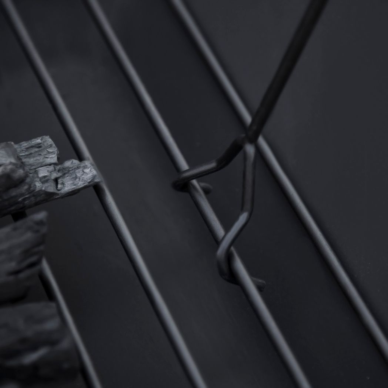– SAFE: Mesh lid to protect against sparks, embers, and debris flying out. Poker is included to move parts around with zero direct contact.