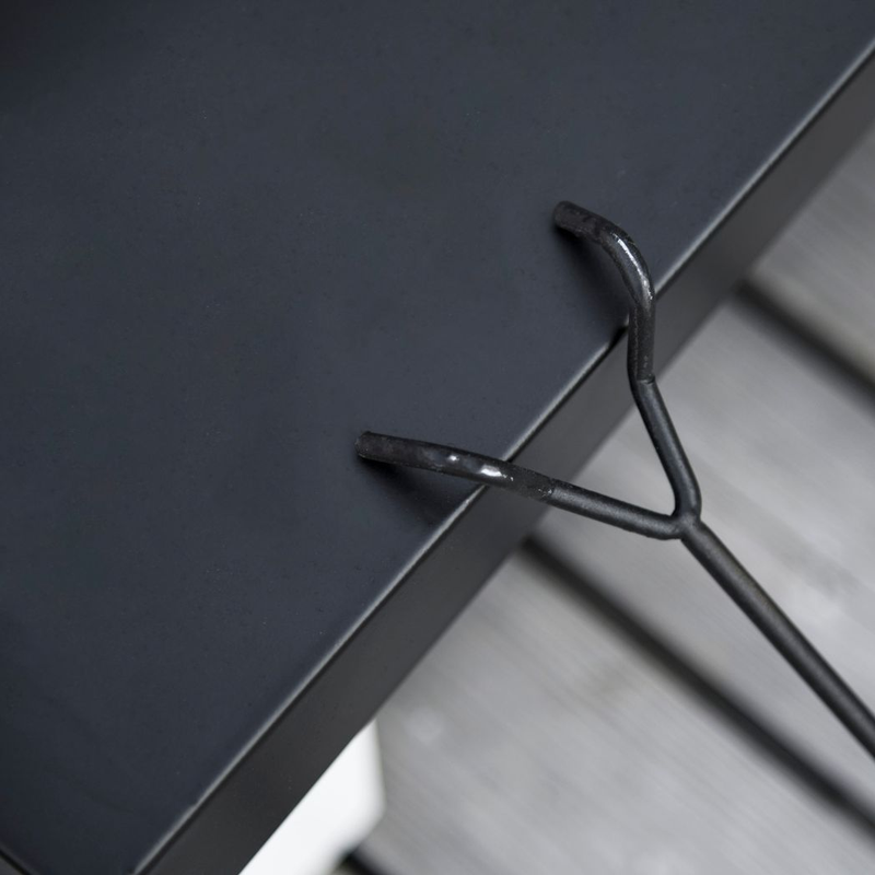 – STEEL FRAME: A solid structure for extended outdoor use. The main bowl of the fire pit for the garden is 500°C resistant, so it doesn’t melt when heated.