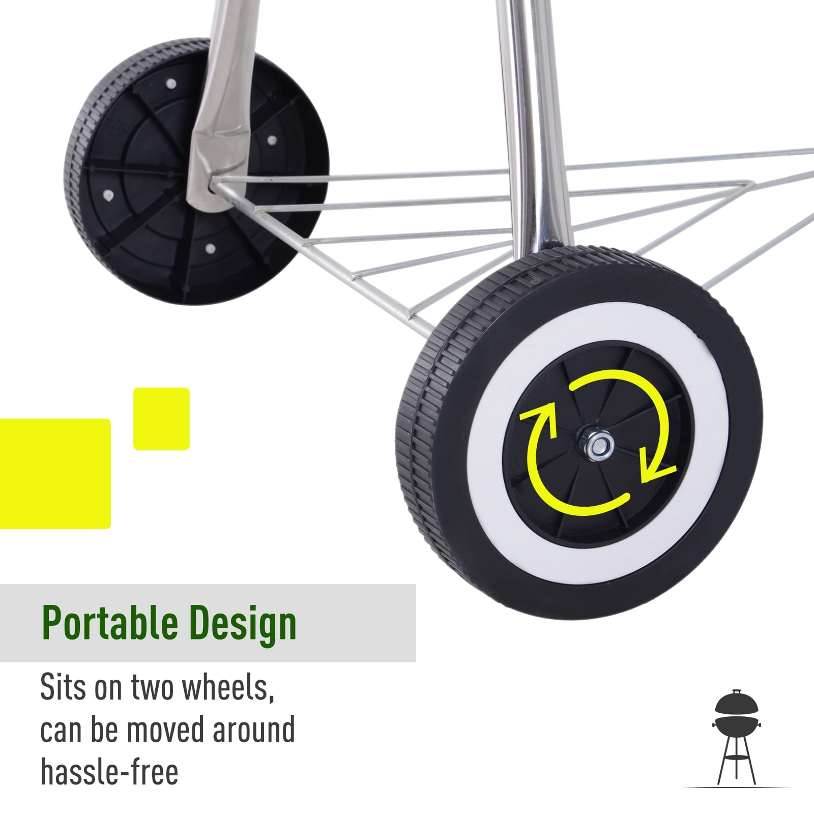 – Three stainless steel legs with two wheels for movement