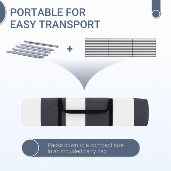 A must for outdoor breaks, this Outsunny 150 x 540cm windbreak protects you from wind, sun, light rain and flying sand – as well as creating a private area when needed. Covers a generous area, making the camping windbreak great for when you and friends are relaxing outdoors – covers you all. Steel poles so it stands upright and in position, with the fabric creating safe shade. Comes with carry bag, guy ropes and ground stakes.