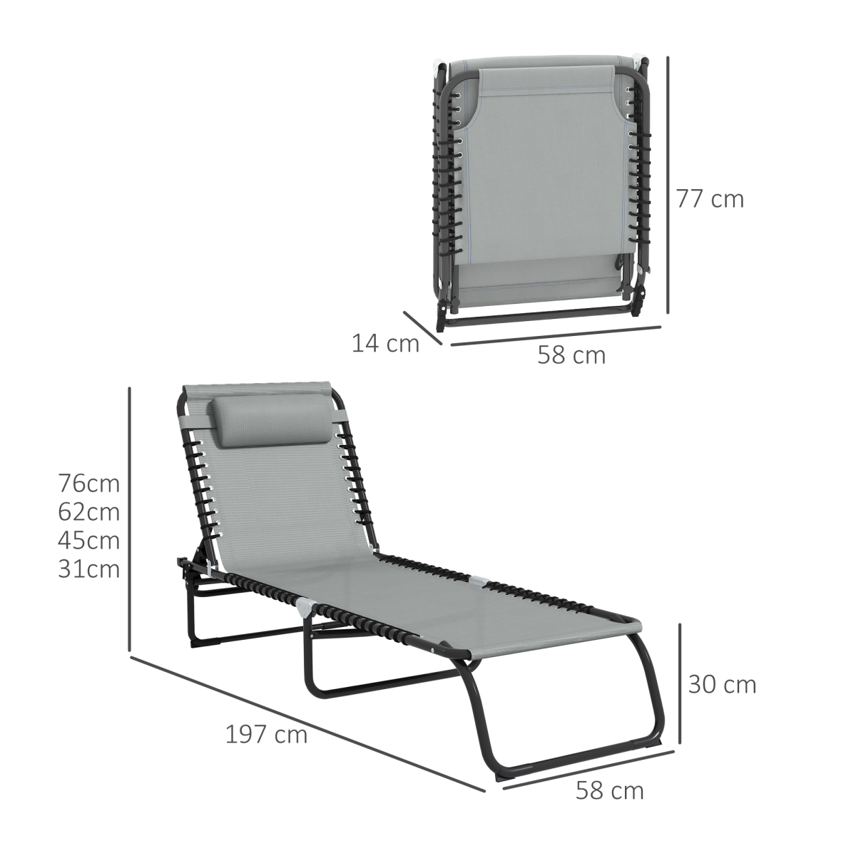 ? 4-Level Backrest Height: 76cm, 62cm, 45cm, 31cm