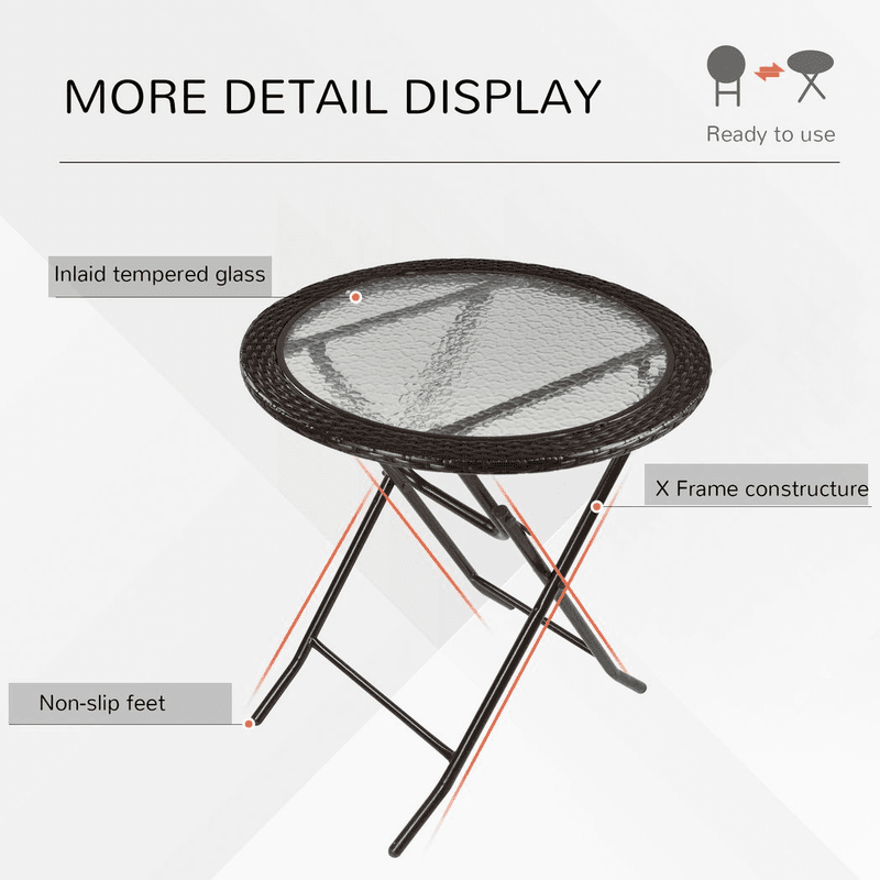 GLASS TABLE TOP: 5mm thick, gives you a solid and safe holding space for outdoors.