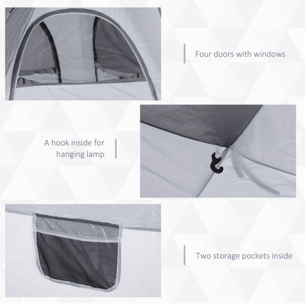 Four man camping tent: Open design is great for spending time with friends and family – whether it’s camping and hiking trips, festivals, weekend adventures and more.