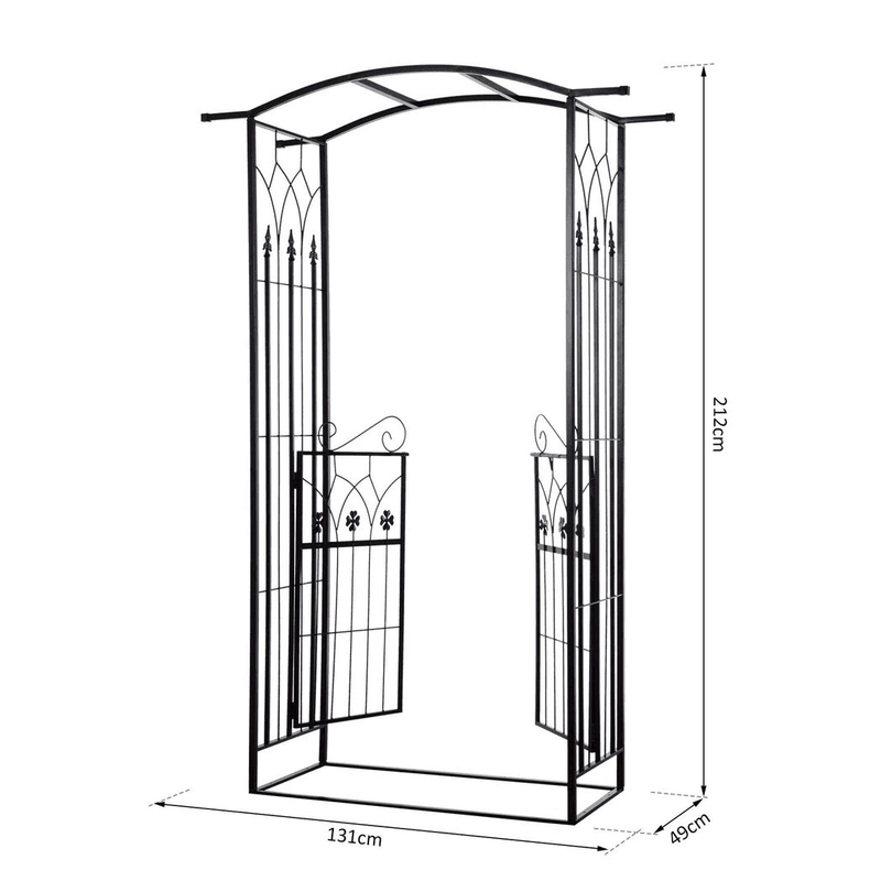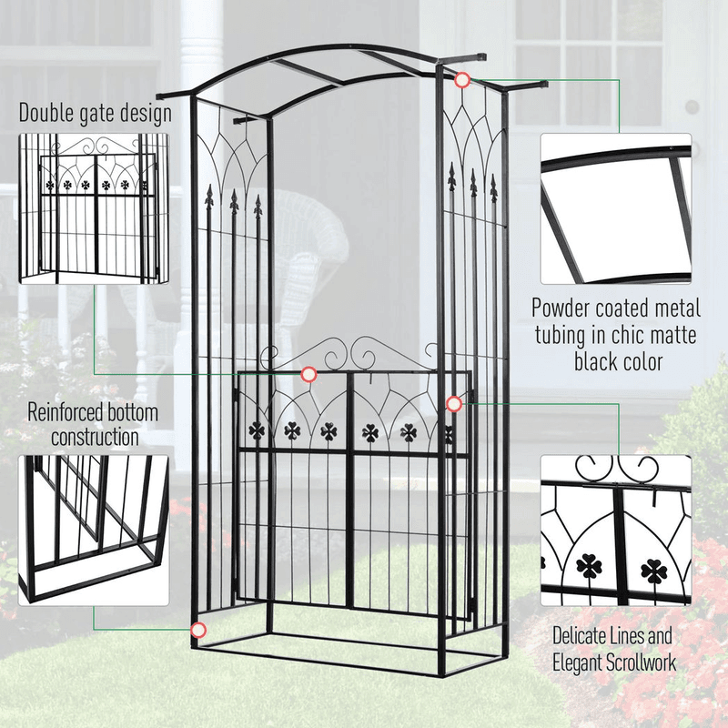 – “TWO GATES: Allows easy access through the arch, creates privacy when closed”