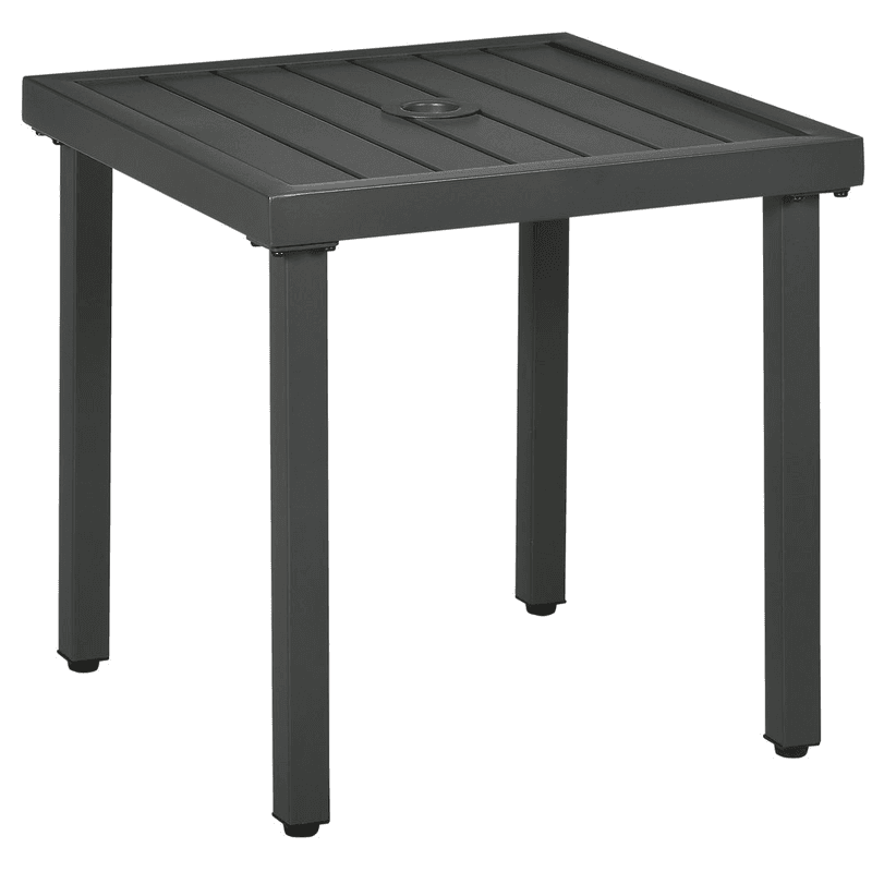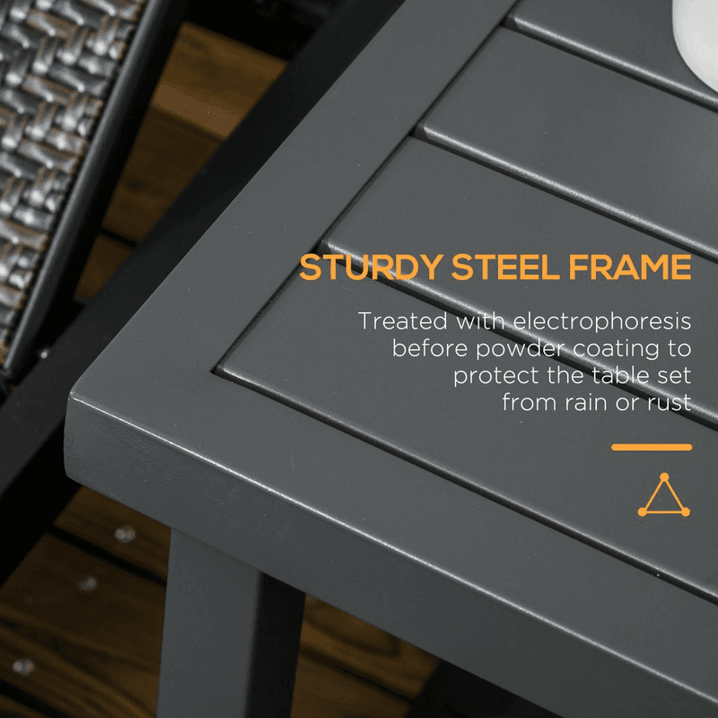 – Steel frame: Powder coated for extra strength, this patio table is strong and robust, resilient against mild weathering, suitable for outdoor use