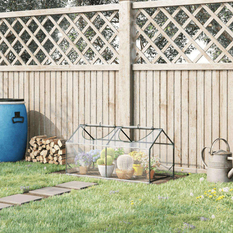 Mini size: Easy to grow plants, vegetables, herbs and flowers almost anywhere. Great for smaller flats and houses, with limited space, like balconies. Two roll-up windows: Easy to open and fix back, to allow air inside when needed. Also, easy to water plants, too. Keeps them healthy and helps them grow. PVC plastic cover Water and UV resistant, protects plants from weather, whilst allowing sunlight inside, giving them lots of natural nutrients. 10cm extended edges to bury into the soil. Steel frame: A strong core, keeps the greenhouse standing upright and in shape. Dimensions: 60H x 120L x 60Wcm. Do not leave in heavy weather conditions. Assembly required.