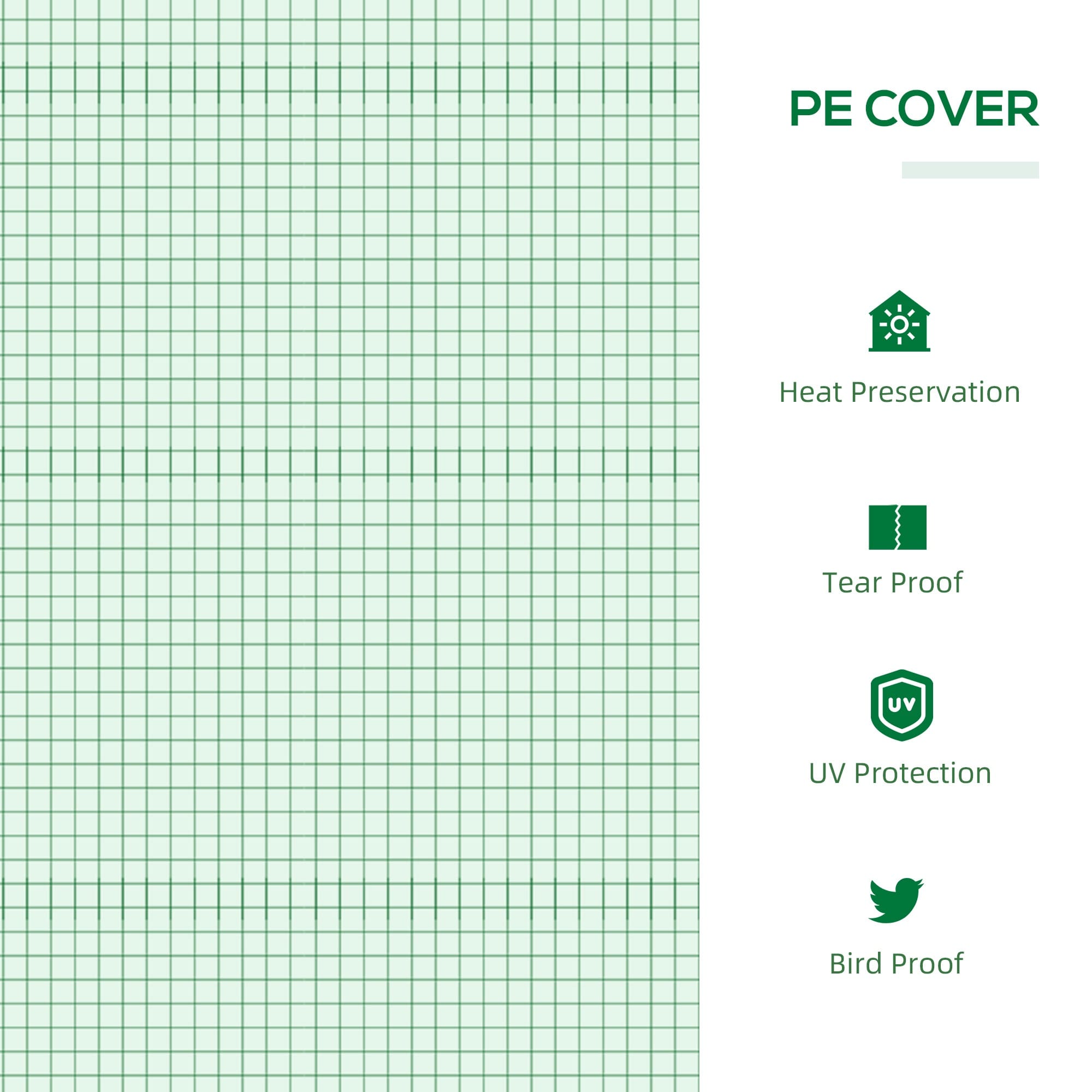 – PE plastic cover for protection to light wind, rain and birds