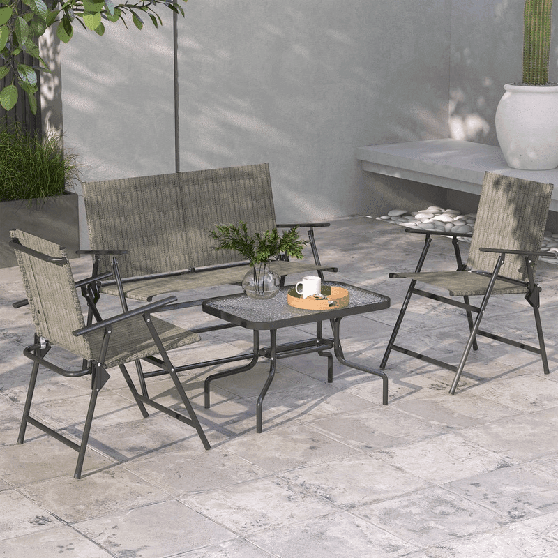– “Outsunny Patio Furniture Set, Garden Set with Table, Foldable Chairs, and a Loveseat”