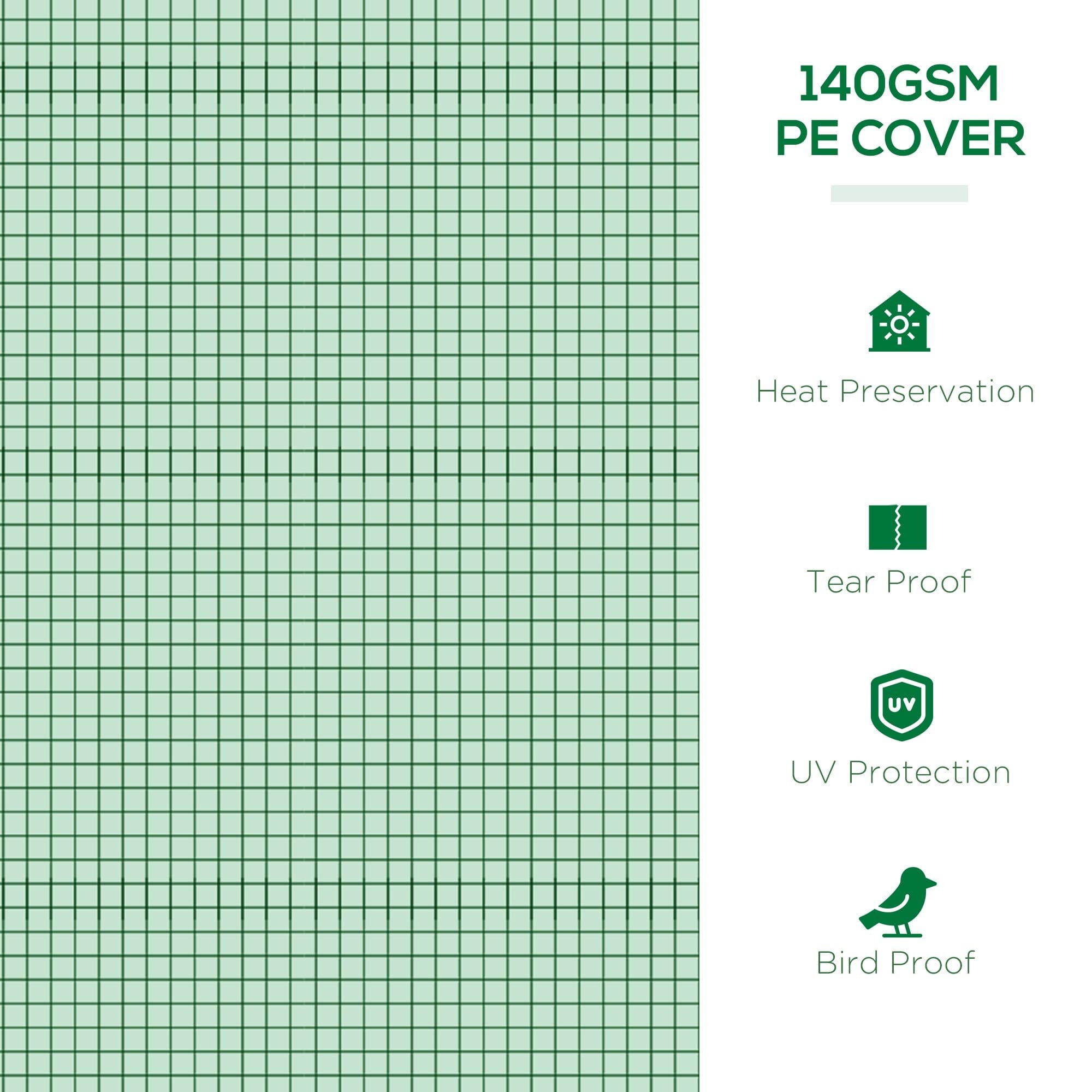 – 140 gsm PE cover prevents tearing, maintains humidity, and protects plants from UV scorching while letting 85% of sunlight through