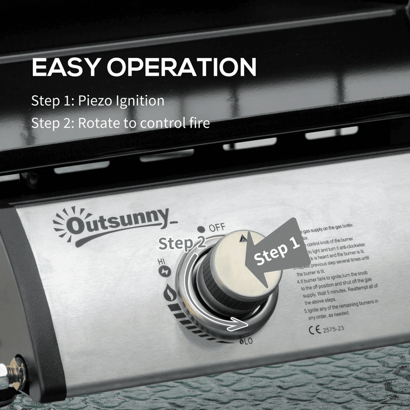 Non-stick hotplate: Gas BBQ plancha has an enamel-coated plate, making it easy to cook food and clean after.