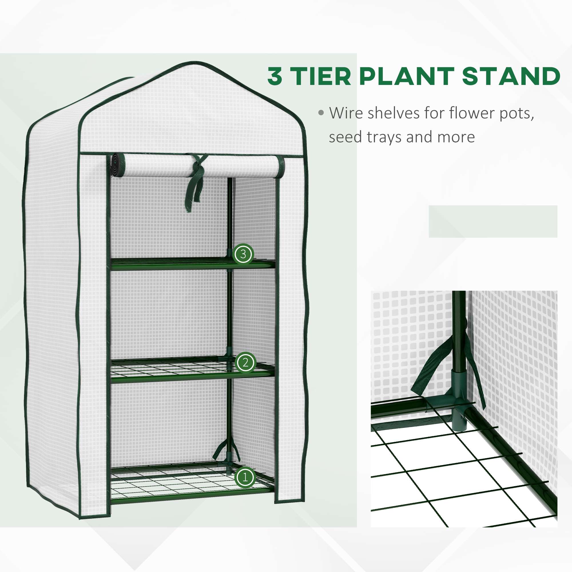● Three wire shelves: holds plenty of plants, without water build-up