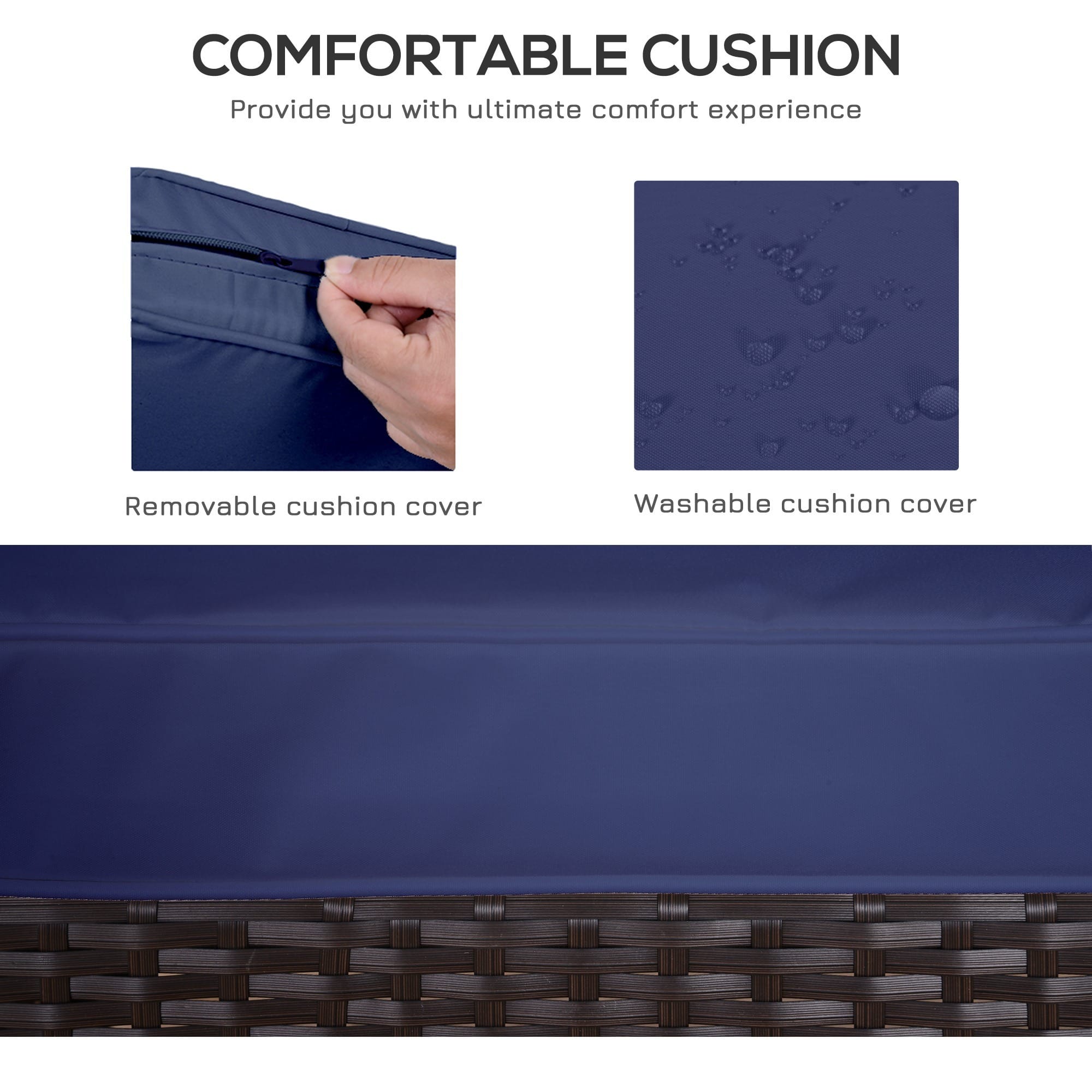 ● Seat cushion covers are removable and washable
