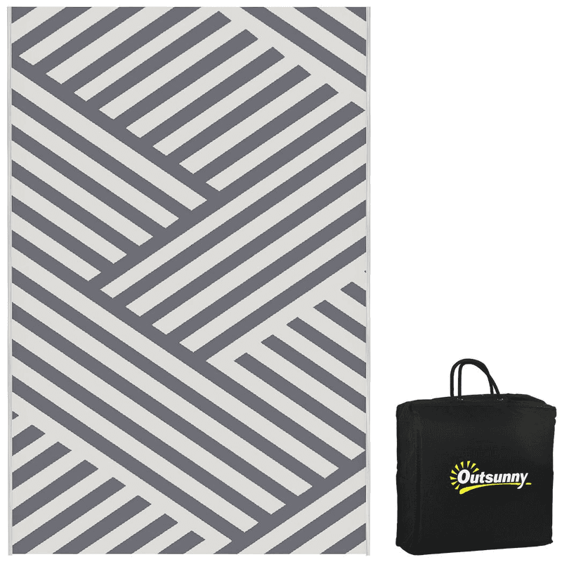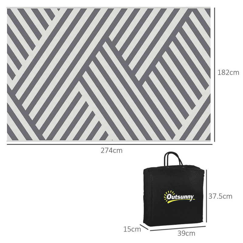 Outsunny Reversible Waterproof Outdoor Rug with Carry Bag, 182 x 274cm, Grey