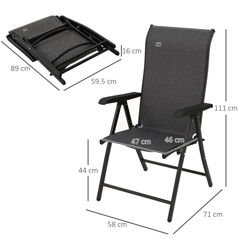 – “Outsunny Set of 2 Outdoor Rattan Folding Chair Set w/ Adjustable Backrest (Grey)”