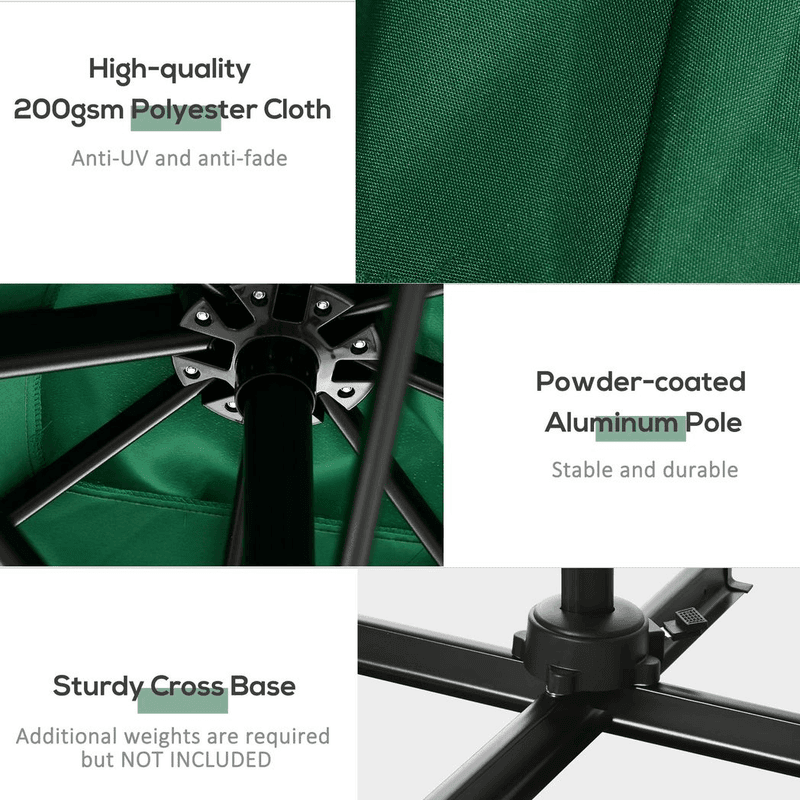 STURDY STRUCTURE: The cantilever patio umbrella is with aluminium pole and 8 steel ribs are powder coated, preventing chipping, peeling, rust and corrosion for reliable use.