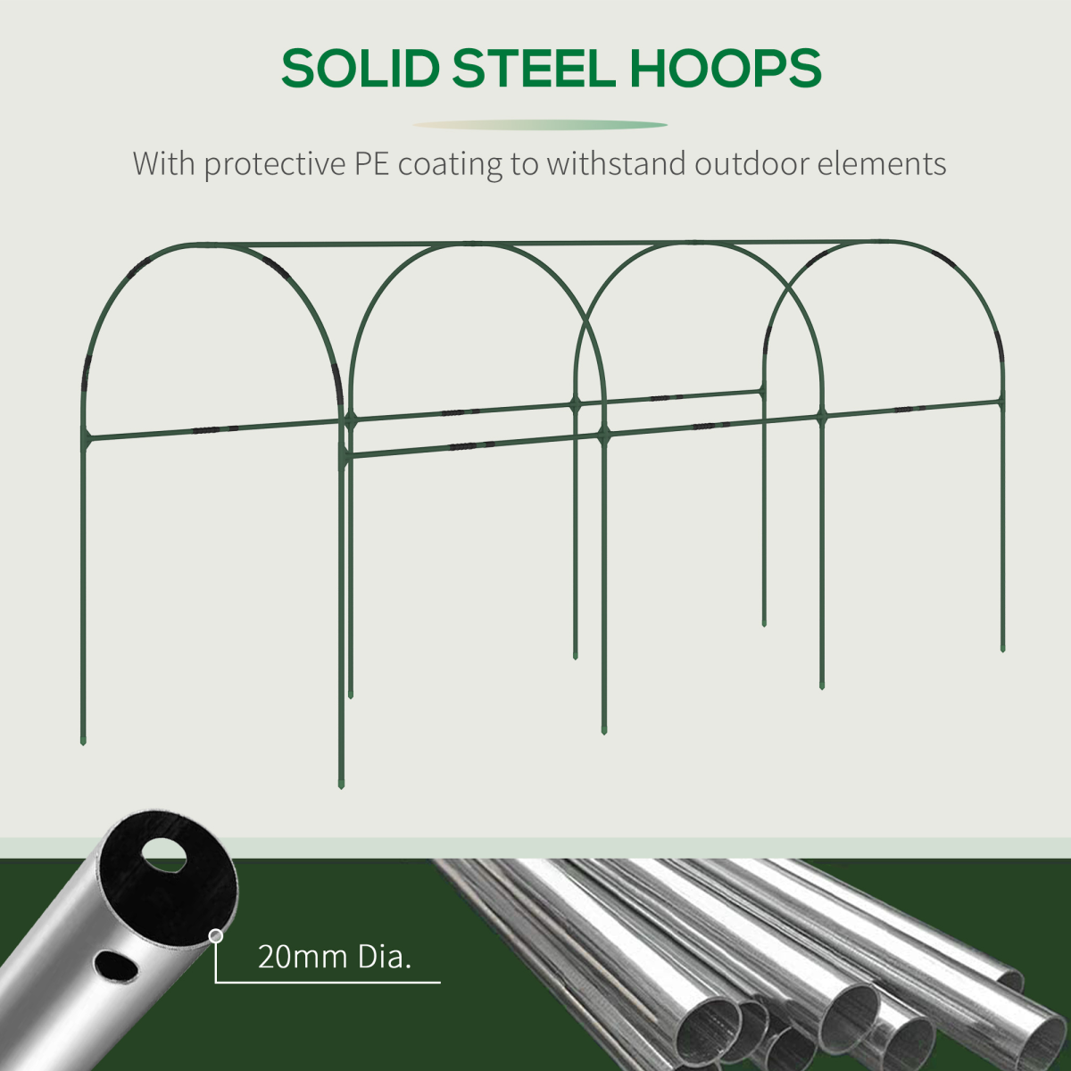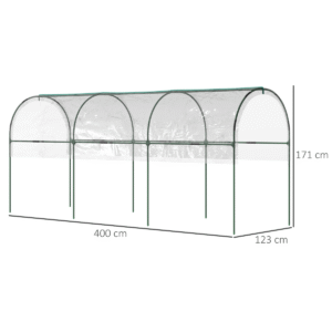 Covered, yet open: this Outsunny tomato greenhouse keeps plants protected from above, whilst allowing air from below – helping to encourage growth to its best. A steel frame for a strong standing structure, moulded into a curved tunnel shape the plastic half cover protects water entering, the arch prevents liquid built-up. Comes with four guy ropes and eight ground stakes to pin to ground and keep it in place.