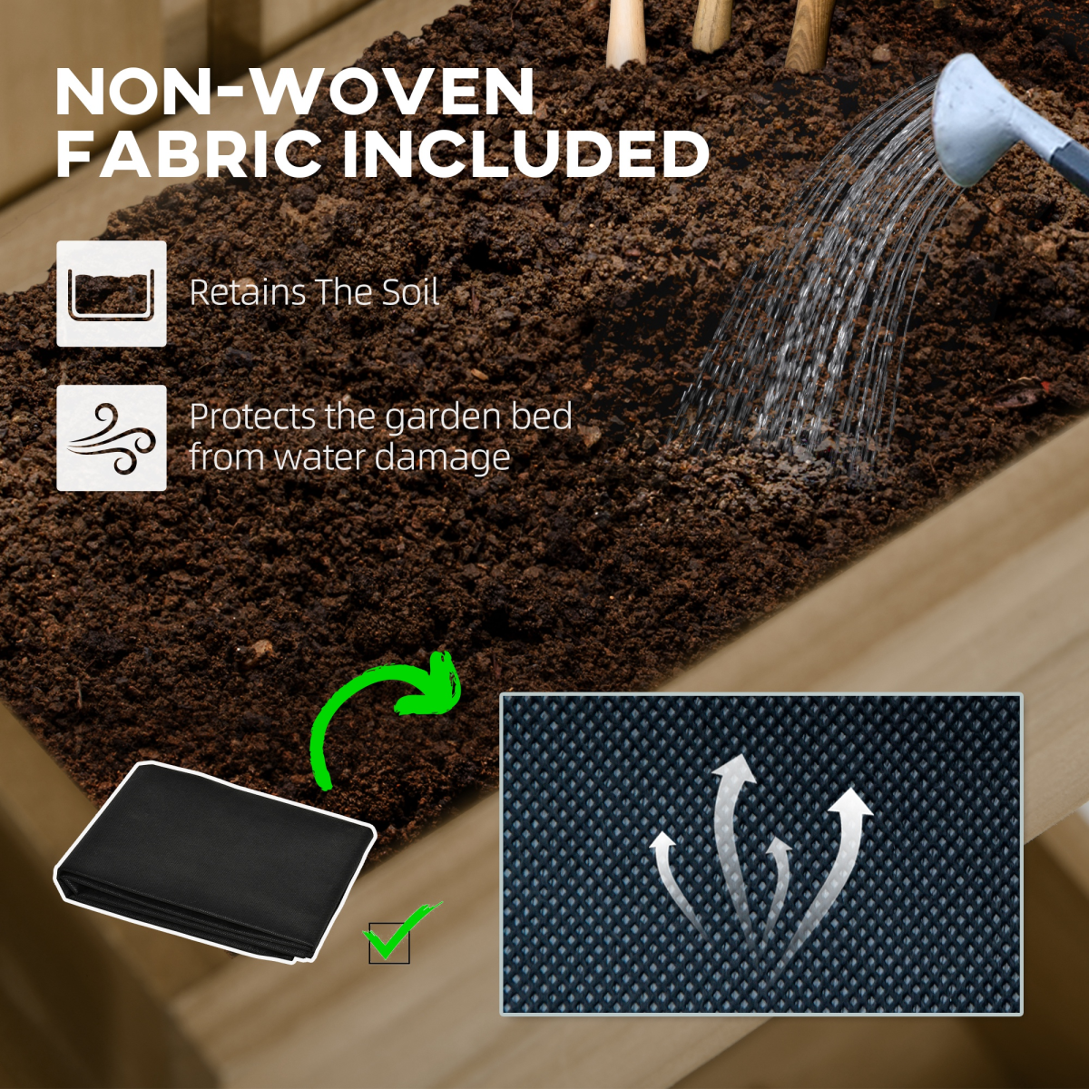 Soil bag and drainage holes in each planter box