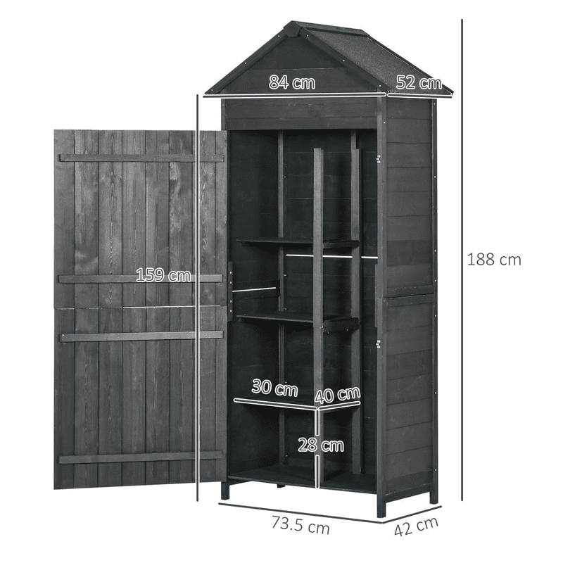 Outsunny Wooden Garden Shed Outdoor Shelves Utility Tool Storage Cabinet Grey”