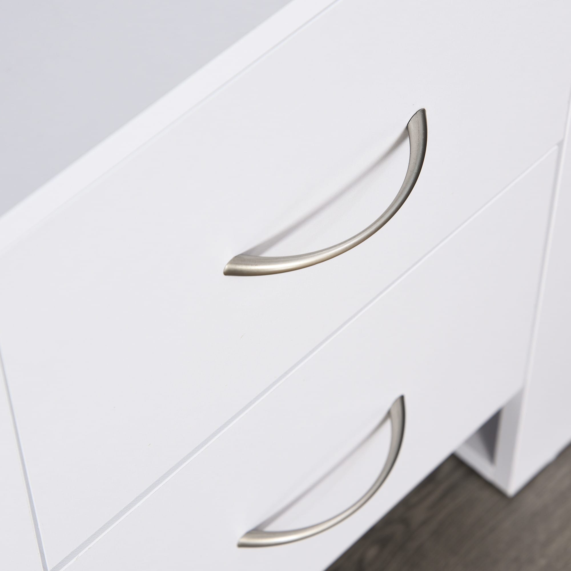 Sleek silver-tone handles for easy opening and closing of the drawers