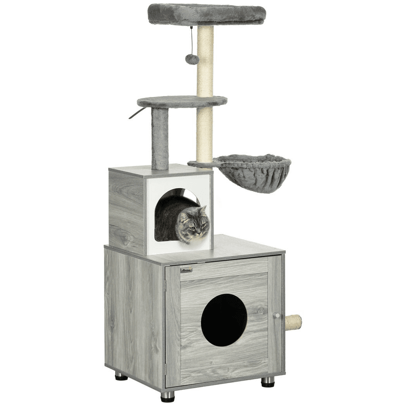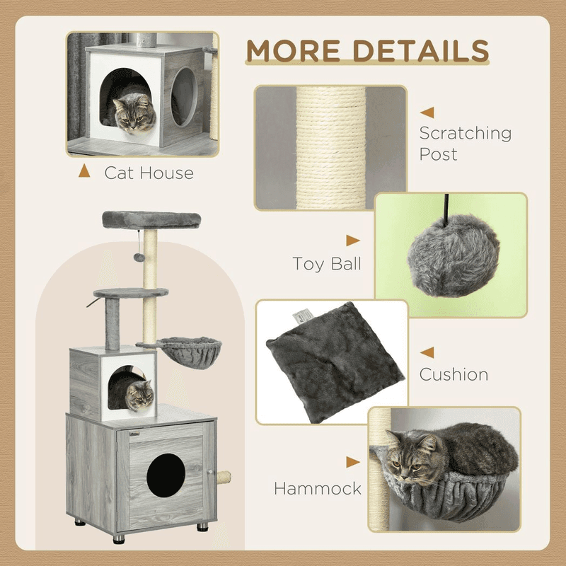 – 2 in 1 design, combining a cat tree and a cat litter box