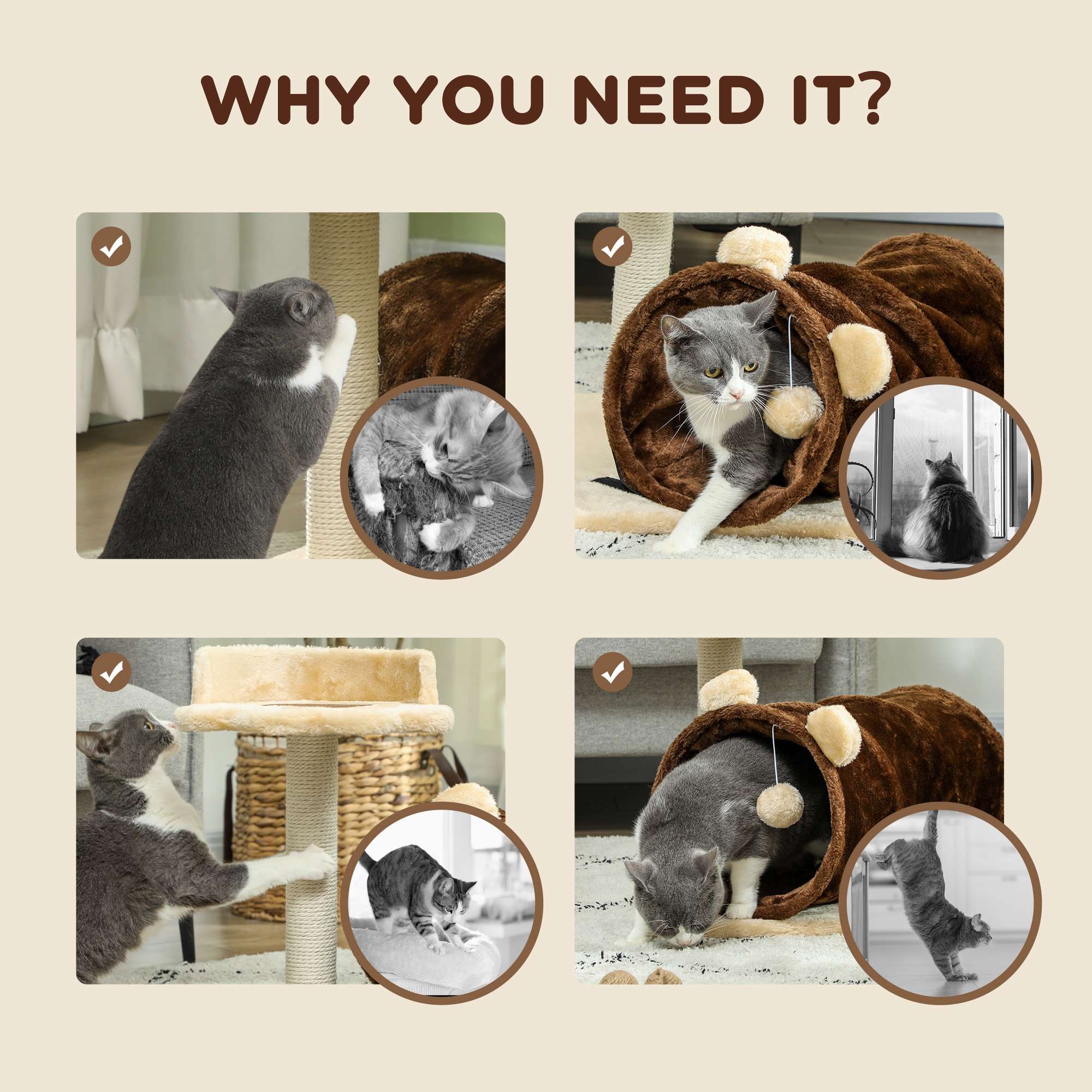 ● Jute scratching posts keep claws healthy and sharp
