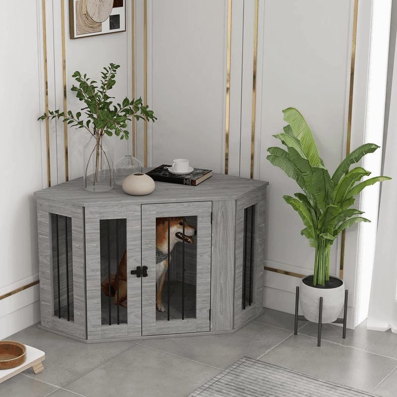 – “PawHut Dog Crate Furniture for Medium Dogs w/ Cushion, Large Door – Grey”