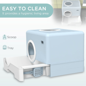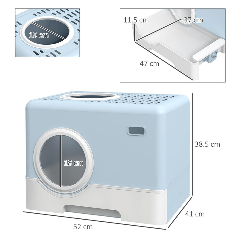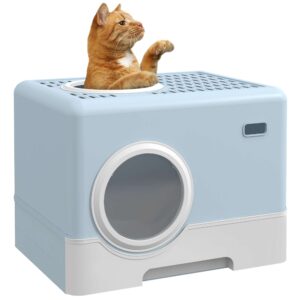 – PawHut Cat Litter Tray Enclosed with Lid, Front Entry, Top Exit, Scoop – Blue