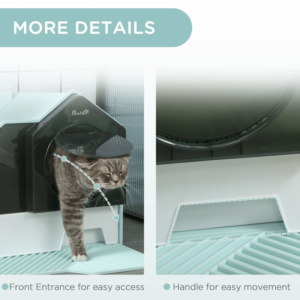 PawHut Hooded Cat Litter Tray with Scoop, Drawer Pan Handle Deodorants Light Blue