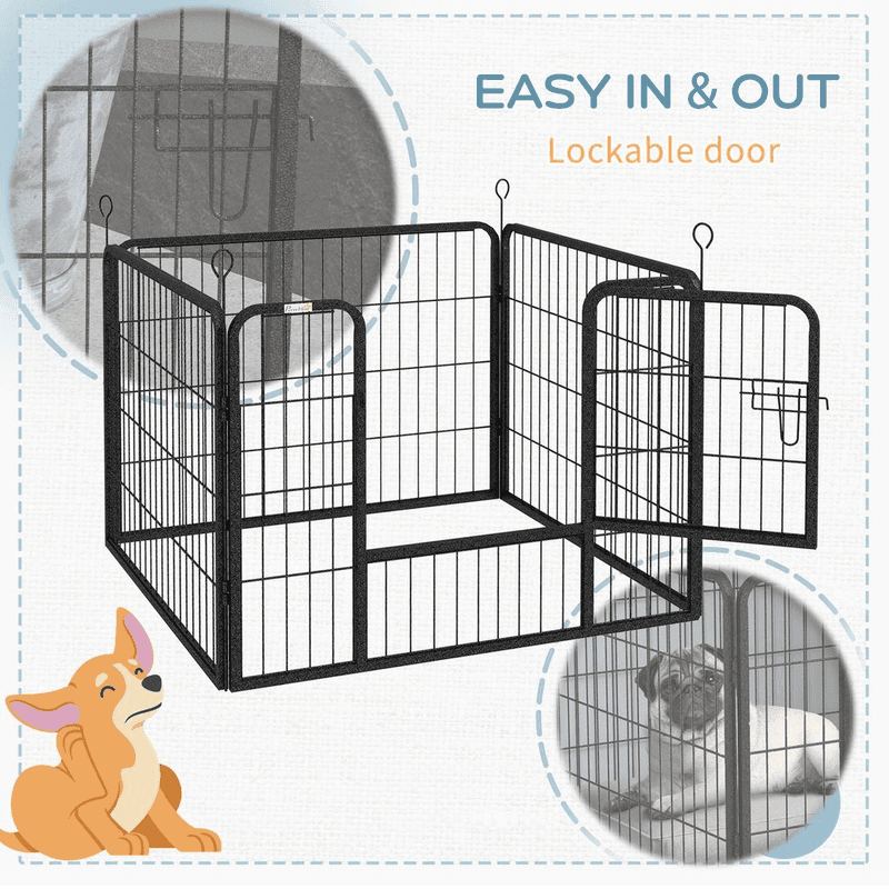 For pets to exercise, play, sleep and training – 4 ground stakes are included in the package, for more stability, secure the pet playpen in the ground – Knockdown design for easy transport and storage.