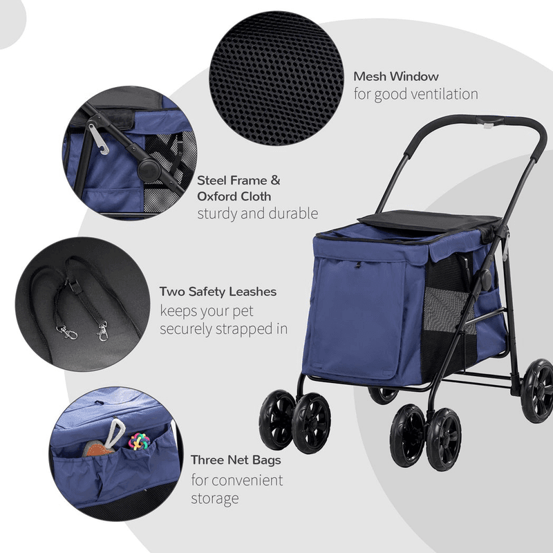 – “PawHut One-click Foldable Pet Stroller w/ Mesh Windows, for Small Pets – Blue”