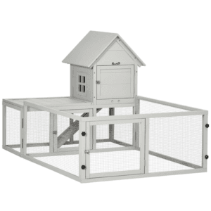 – Solid construction: Made from strong fir wood, keeping this rabbit house sturdy and durable. It’s an all-grey tone, which fits well with existing home décor.