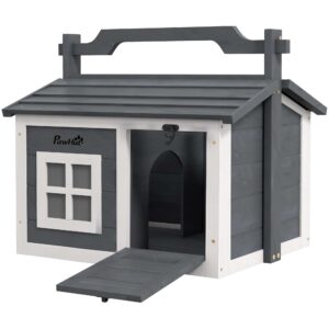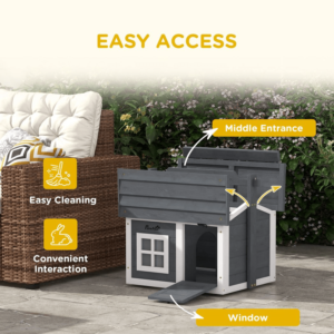 – PawHut Rabbit Hutch Indoor Outdoor w/ Top Handle, Openable Roof – Grey