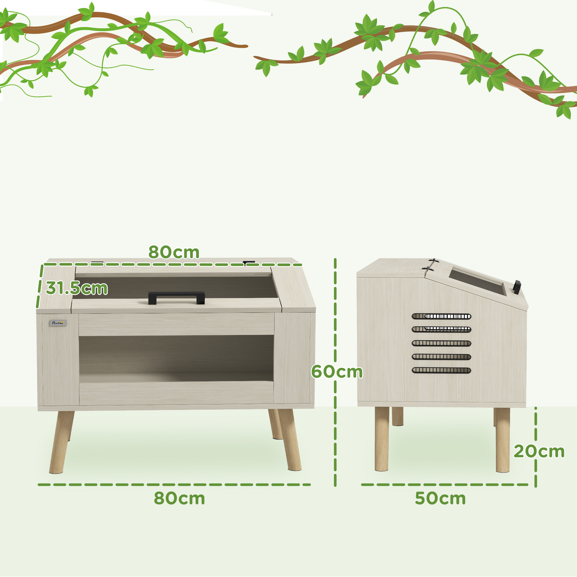 Unleash your reptile’s paradise with the PawHut Reptile Terrarium, a spacious 111-litre haven great for lizards, horned frogs and even hamsters. Peek into their world through the openable top and front tempered glass windows, ensuring they’re always in sight. Airflow is a breeze with 10 vents keeping your bearded dragon vivarium or snake tank fresh. It’s not just a reptile tank, it’s their new home.
