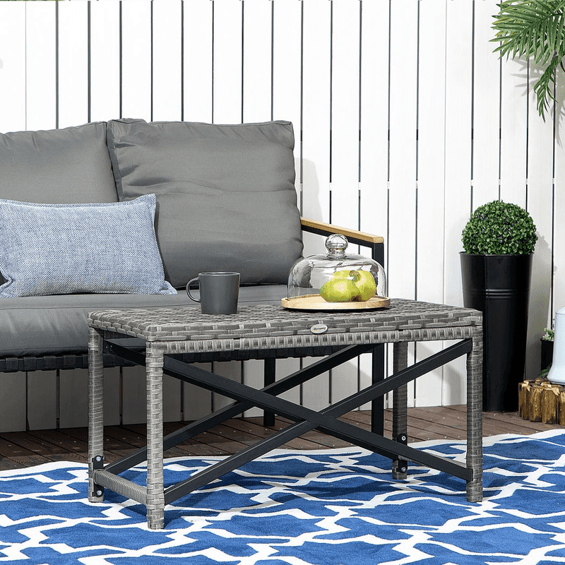 Steel frame, rattan top: Powder coated metal for a strong structure. Plastic wicker top is durable – adds to the style of this garden side table. Spacious table top: Outdoor coffee table has a good amount of room for holding what you want to have close by – now moving once you’re settled in.